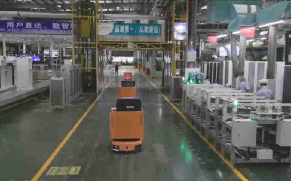 为车载冰箱物流配送打造的智能解决方案,,,,包含产中物流通过潜伏举升AMR搬运至线边,,,产后成品物流智能仓储,,流程包含产中物流智能齐套入库,,,,线边安灯叫料AMR智能配送至线边,,,,成品入库、、、、出库,,,通过无人堆高车机器人,,,,智能仓储管理替代人工作业管理,,,实现更高存储、、更高效率、、、、更具柔性化的解决方案。。